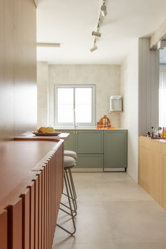 Um apartamento antigo que mudamos não apenas a estética repaginando, mas também toda a funcionalidade do espeço e integração dos ambientes. A cozinha aberta permitiu uma sala muito mais ampla, iluminada e ventilada para que os moradores possam receber amigos em casa.